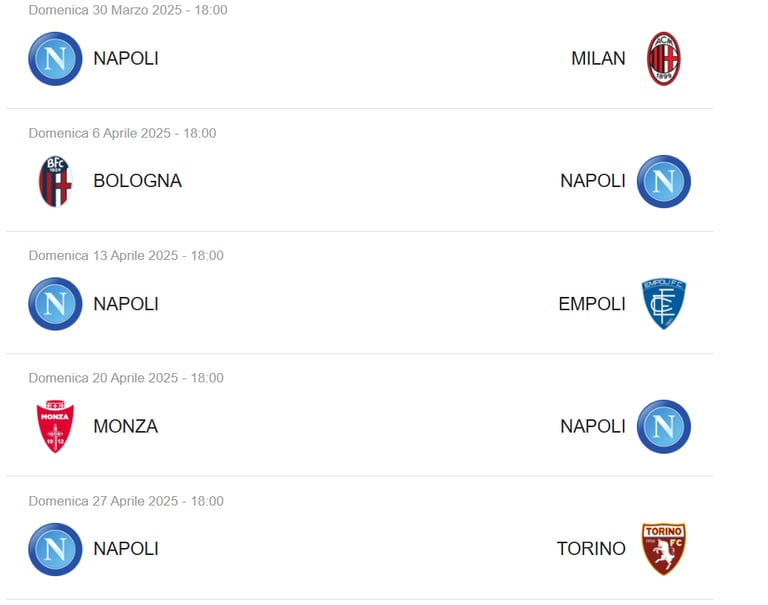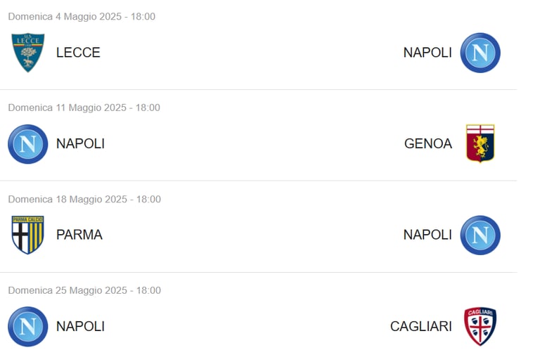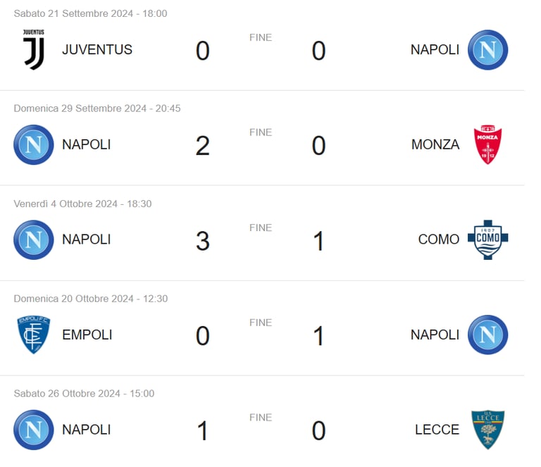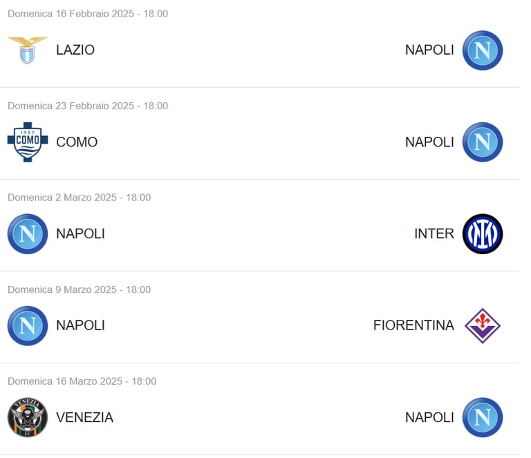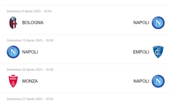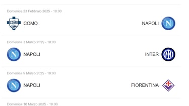 La SSC Napoli inizierà il campionato con la prima partita il 13 agosto 2024, affrontando avversari di prestigio. Durante la stagione, i tifosi possono aspettarsi partite chiave, come quelle contro Juventus e AC Milan, programmate per il 30 novembre 2024 e il 18 gennaio 2025, rispettivamente. Inoltre, il derbi locali porteranno ulteriore adrenalina, a iniziare dal match contro l'AS Roma fissato per il 24 dicembre 2024.